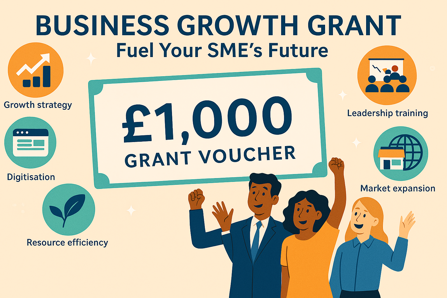 If your business has been trading for over 12 months, you could be eligible for a £1,000 grant to support growth, productivity, and innovation.
